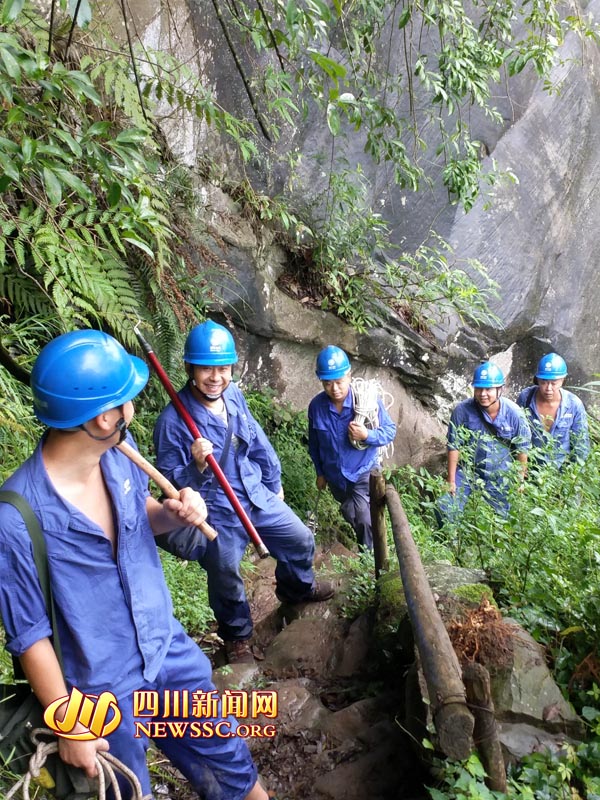 随行第二日,四川新闻网记者与班员一同来到锦苏线534号铁塔附近。初出茅庐的90后大学生班员郝兵一组,入户到山里义务护线员刘富向家中,回访铁塔堡坎滑坡隐患处理情况。“运输砖石、水泥等材料路途遥远,相当长的距离需要人工搬抬,寻找水源困难,所以在一些基建工程上,我们找当地山民协助完成。”团队里年纪最轻的郝兵,对班长代金云的“万精油”头脑很是佩服,说自己从班长身上取到了许多“真经”。