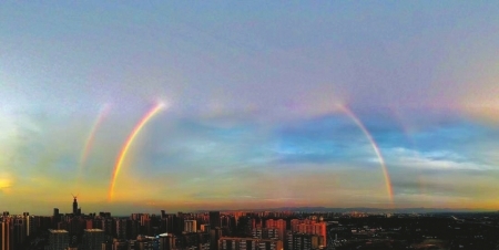 8月19日傍晚,成都天空现彩虹。