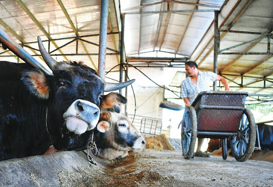 从“单打独斗”到“抱团发展”,解决了不少村发展肉牛养殖的难题。李家余告诉记者,此前,联络村不少村民因害怕牛生病不敢养牛。得知这一情况后,五凤村立即向联络村派去养牛技术人员,并把五凤村摸索出的肉牛养殖防疫标准复制到各个示范区建设成员村。