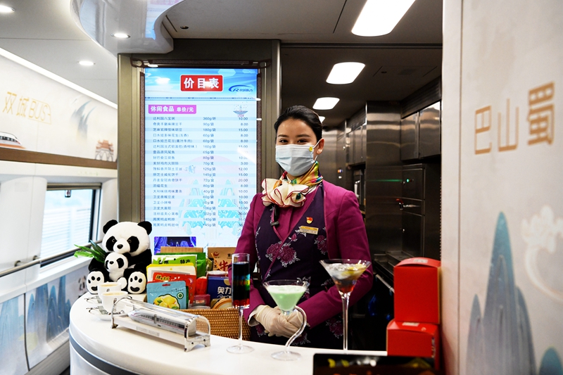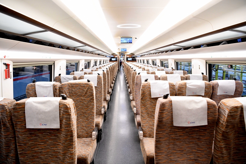 列车采用多种照明控制模式,可根据旅客需求提供不同的光线环境。每个座位旁边都设有充电插座,极大地方便了旅客充电需求。车厢内实现了WiFi网络全覆盖,让旅客在旅行中有更好的乘坐体验。(图片由中国铁路成都局集团公司提供)