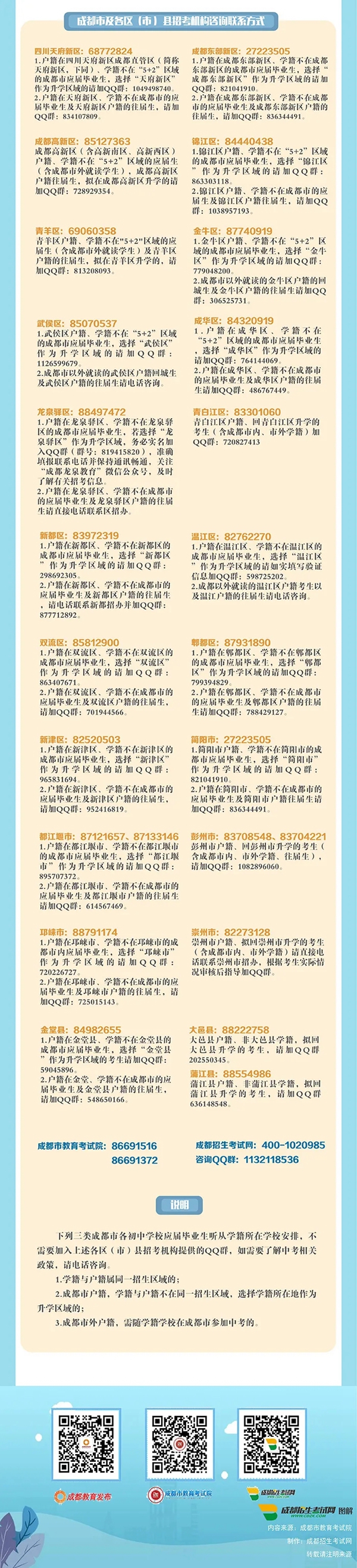 成都市各初中学校2021年应届毕业生(含拟随学籍所在学校参加成都中考的非成都市户籍应届毕业生),在成都市以外就读、要回成都市升入高中阶段教育学校(包括普通高中、中职类学校、五年制高职<含师范>,下同)的成都市户籍应届初中毕业生(含拟于2021年升入成都市高中阶段教育学校的成都市户籍往届生),均可报名!