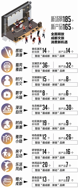 其中,“感知浪漫”音乐演艺新场景14个、新产品14个,旨在深化音乐演艺交互体验,提升城市浪漫包容感知度,塑造“最成都·新乐”品牌。记者梳理发现,该领域包含少城剧场、盖碗梨园、钻石音乐厅、五粮液成都金融城演艺中心等新产品,以及成都露天音乐公园、音乐大草坪、幸福田园景区、梵木创艺区等新场景。