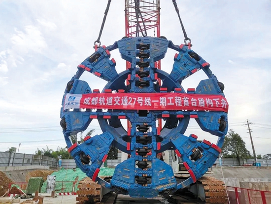 成都轨道交通27号线一期工程首台盾构下井