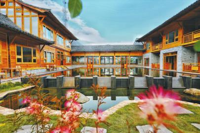 位于泸州市合江县法王寺镇龙挂山景区的合江县龙挂山·半山云舍民宿,由六幢具有浓郁川南特色民居风格的吊脚小楼与竹林、茶园、水池、庭院等外部景观组成,建筑设计上采用当地特有的丹霞红石、穿斗木构等传统文化因素。川南民居风格加上富有品质的装修与服务,让这个民宿走红网络。