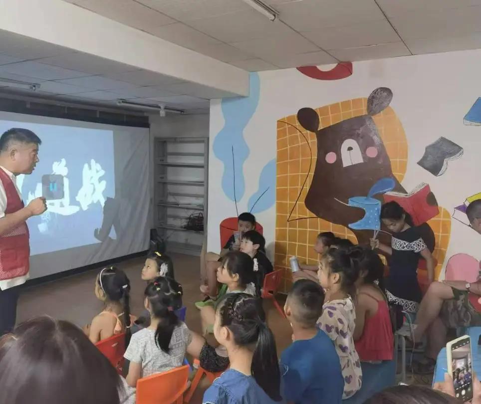 四川新闻网-首屏新闻成都9月3日讯 为纪念抗战胜利79周年,9月3日,青羊区退役军人事务局组织退役军人志愿服务队——青羊区退役军人战旗红老兵放映志愿服务队,走进区内中坝社区锦绣光华小区,组织小区25名小朋友,在小区图书室,开展“红色观影”国防教育活动。