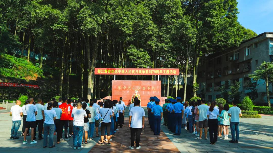 都江堰市退役军人事务局在都江堰市烈士陵园组织开展纪念中国人民抗日战争胜利79周年主题活动。全体人员行鞠躬礼,敬献鲜花,参观英烈纪念馆,学习抗日英雄王希祥的英烈事迹。