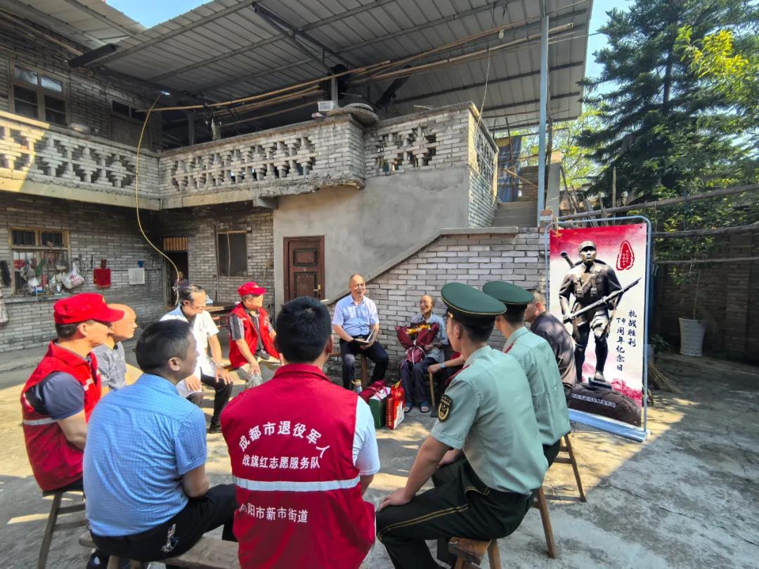 简阳市退役军人事务局组织开展抗战胜利纪念日走访慰问活动。慰问组来到新市街道怀远社区,看望慰问抗战老兵李天才,聆听老兵讲述抗战历史和战斗经历,详细询问其身体状况和生活情况并送上慰问品,表达党和政府的关怀。