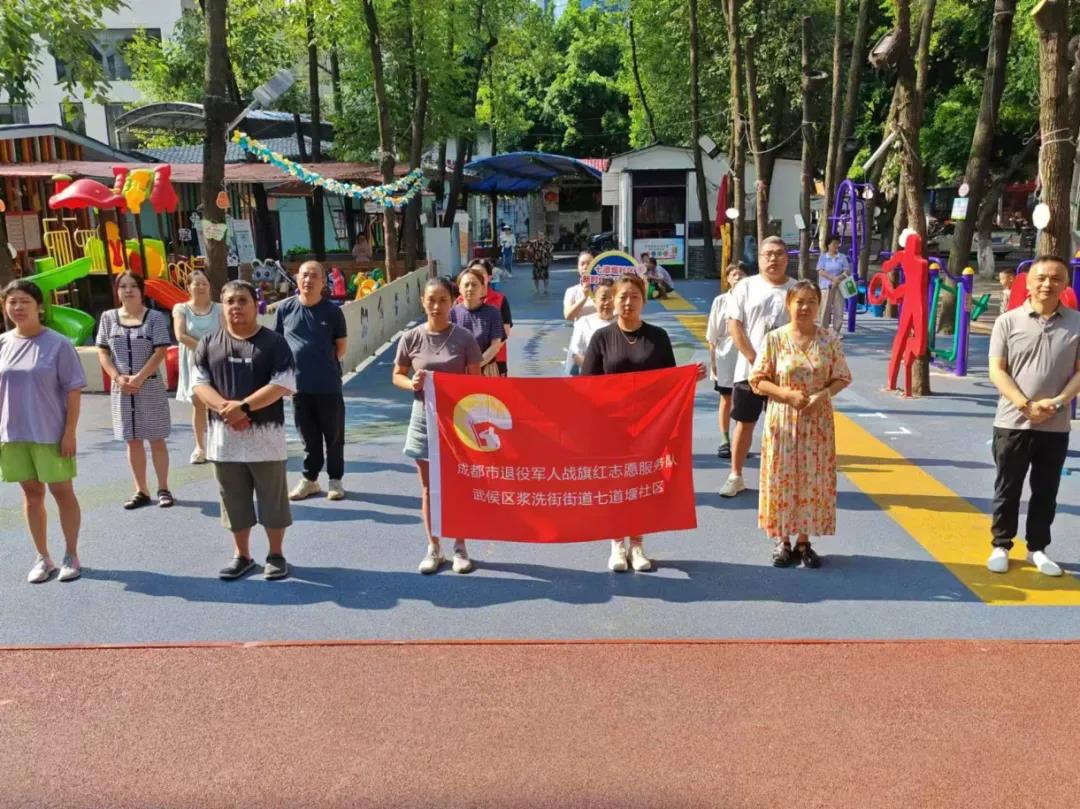 武侯区七道堰社区退役军人服务站在七道堰社区广场举行中国人民抗日战争胜利纪念日主题升旗仪式,进一步弘扬爱国主义精神,激发大家的爱国主义情怀。(图由成都市退役军人事务局提供)