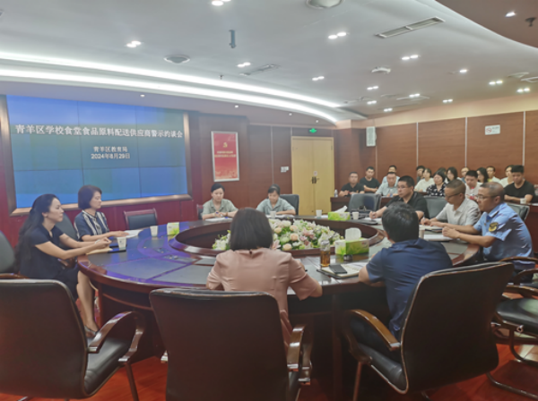 青羊区市场监管局联合青羊区教育局组织召开青羊区学校食堂食品原料配送供应商警示约谈会,会议强调,供应商要落实落细食品安全责任制,建立健全管理制度,配齐食品安全管理人员,结合实际制定食品安全风险管控清单,建立“日管控、周排查、月调度”工作制度,根据风险防控清单进行检查;要严格执行进货查验和索证索票制度,建立食品购销档案,索取和查验食品生产企业或食品批发企业的证照及食品合格证明文件,整理建档备查;要规范制作食品购销台帐,每次进货时必须如实建立进货台帐,内容包括购入食品的名称、规格、数量、生产日期、保质期、购货日期以及供货商名称、联系方式等,相关票据应当妥善保管备查。并与与会的30家供应商签订了食品经营企业约谈通知书。