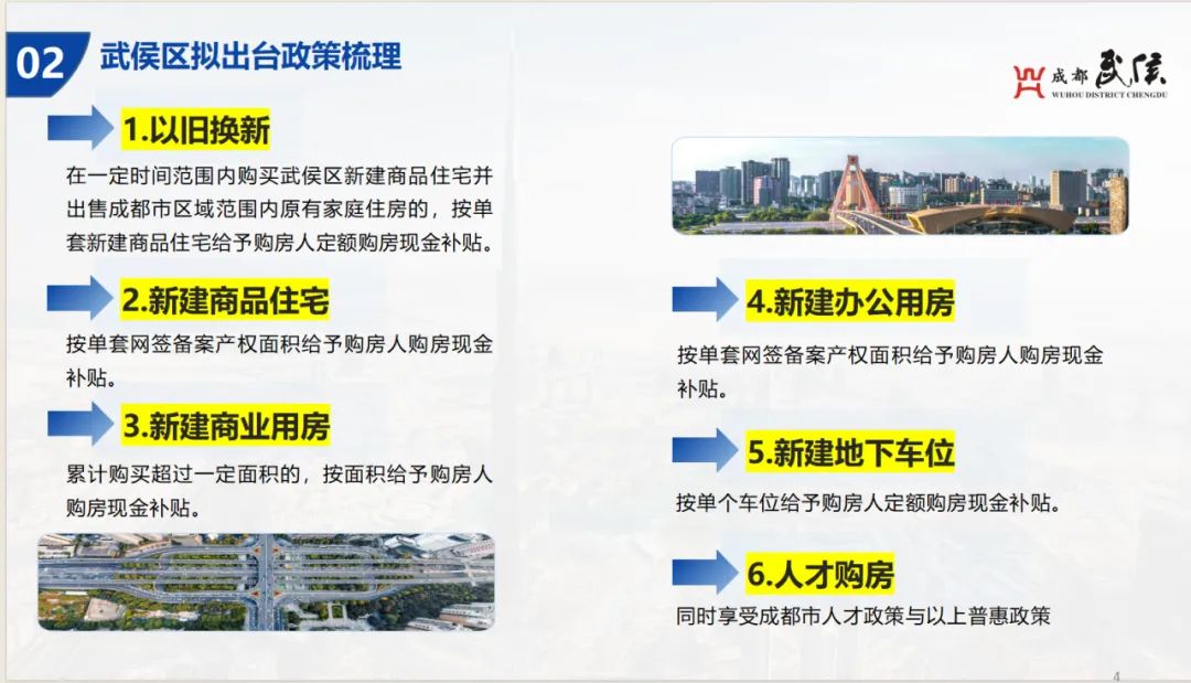 “普通消费品市场重点在于‘换新’,房地产市场更应着眼于‘购新’。因此,武侯区拟出台《武侯区住房‘以旧换新’工作实施方案(试行)》,对‘换新’的群众给予补贴,但更支持和鼓励群众‘购新’。”武侯区住建交局相关负责人表示,武侯将继续打好政策“组合拳”,从“以旧换新”、新建商品住宅、新建商业用房、新建办公用房、新建车位、人才购房等方面给予支持,通过改善居民居住环境,提升居民生活品质,满足人民群众对优质生活空间的追求,促进武侯区房地产市场的平稳健康有序发展。