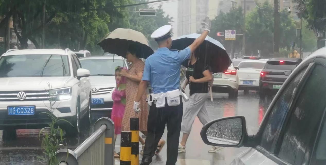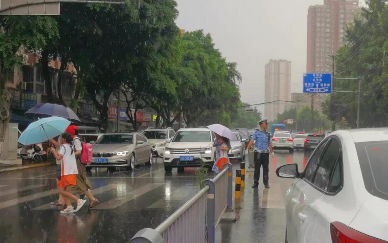 暴雨中坚守 “护学岗”铺就师生“平安路”