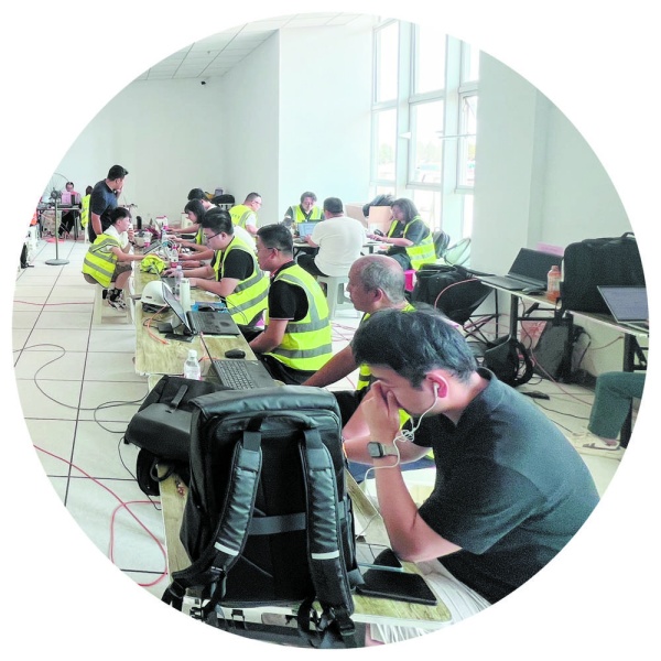 在汤永胜的手机上,记者看到了不少最近这次联调的现场照片。有的是在尚未启用的机场运行中心里,有的是在机房旁边的房间里,技术人员就坐在小板凳上,埋头于面前的电脑,通过紧张的联调,将众多系统进行数据连接,慢慢将各个独立的子系统连接成一个智慧机场的整体信息化弱电系统。