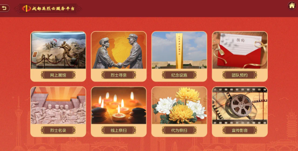 平台整合开发了“网上展馆”“烈士名录”“纪念设施”“团队预约”“烈士寻亲”“线上祭扫”“代为祭扫”“宣传影音”八大功能模块。