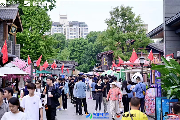 在离宽窄巷子几公里之隔的文殊坊街区,国庆期间也人气爆棚。文殊坊举办了以“熊猫之城 美食之都”为主题的“成都国际美食嘉年华”活动,包含成都国际美食嘉年华&成都熊猫国际美食荟开幕式、美食市集、沉浸式国潮戏剧演出等内容,为市民游客的国庆假期增添了更多样的消费体验。