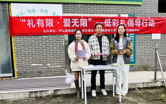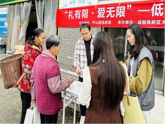 到集市、进商铺,向广大人民群众讲低价彩礼、话婚俗改革......近日,雅安市芦山县民政局联合成都高新区大熊猫社会工作服务中心开展“礼有限·爱无限”——低彩礼倡导行动,号召大家转变思想观念自觉抵制高价彩礼,树立正确的家庭观、婚姻观、价值观,争做新时代文明新风的倡导者和实践者。
