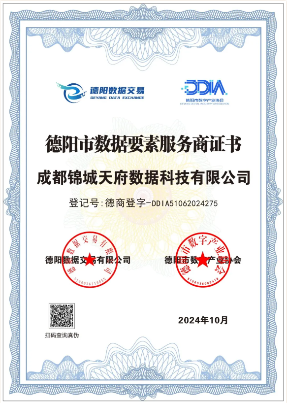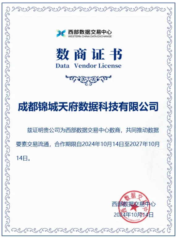 日前,记者从成都锦城天府投资发展集团有限公司获悉,锦城天府集团二级子公司成都锦城天府数据科技有限公司(以下简称“数科公司”)正式通过西部数据交易中心和德阳数据交易中心认证,获得数据交易服务领域共8项专业资质。标志着数科公司在数据要素交易流通领域迈出重要一步,开启数据要素市场新篇章。