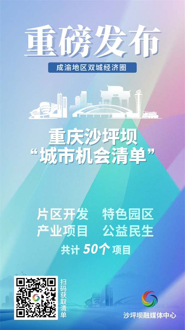 沙坪坝区“城市机会清单”共50个。精心筛选并推出7个片区开发项目、16个特色园区项目、14个产业项目、13个公益民生项目。