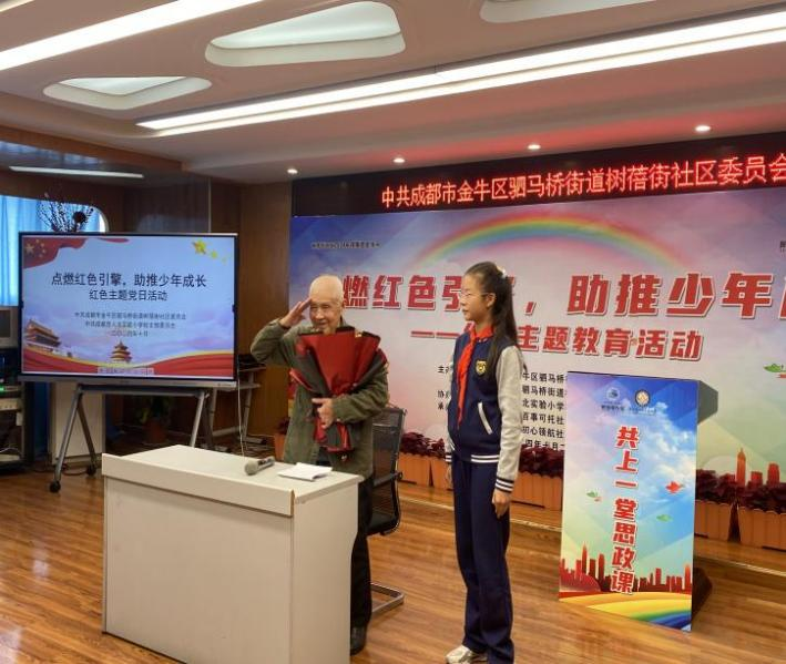 10月23日,金牛区驷马桥街道树蓓街社区与人北实验小学联合开展红色教育座谈会。活动中,学生们为抗美援朝老战士及50年党龄的老同志送上鲜花,表达祝福和崇高敬意。抗美援朝老战士代表江功勋老人讲述了自己的亲身经历,回顾了那段血与火的岁月,让大家深受触动。同时,活动通过知识问答、诗歌朗诵、红歌合唱等方式,向抗美援朝老战士表达了敬意。大家纷纷表示,不仅了解了抗美援朝的历史,更深刻感受到和平的来之不易以及肩负的责任。
