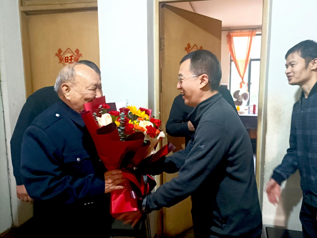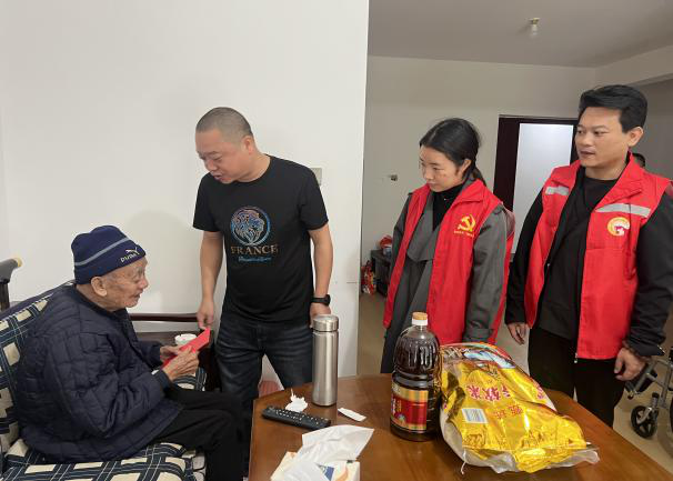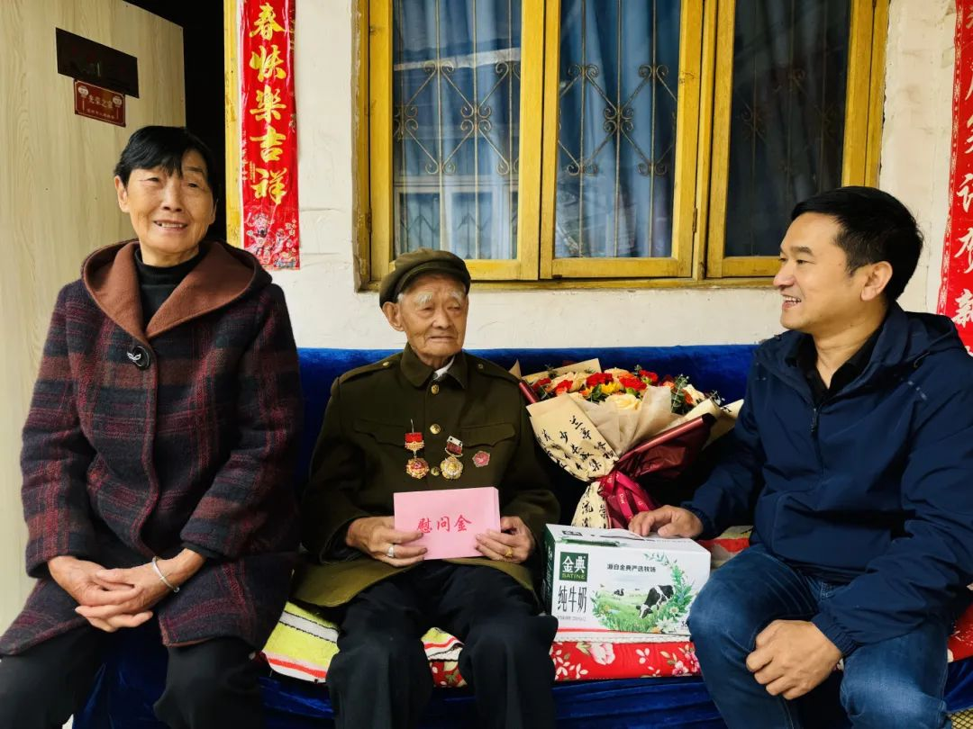 10月24日,青白江区退役军人战旗红志愿服务队、青白江区爱国拥军联合会及爱心企业代表一行,前往大同街道养护院走访慰问抗美援朝老战士。吕长增老人虽然已经104岁,但依旧精神矍铄、思维清晰,他向慰问组一行讲述当时的情形:“为躲避敌人飞机轰炸,部队采取白天休息,夜晚行军,最苦的是没有吃没有喝,我最清楚的是4天4夜没喝一口水……”。工作人员紧握吕爷爷的手说道:“你们都是时代的楷模、人民的英雄,我们在向你们学习的同时,更要将抗美援朝精神更好地发扬下去,激励越来越多的人参与到社会化拥军的工作中来!”