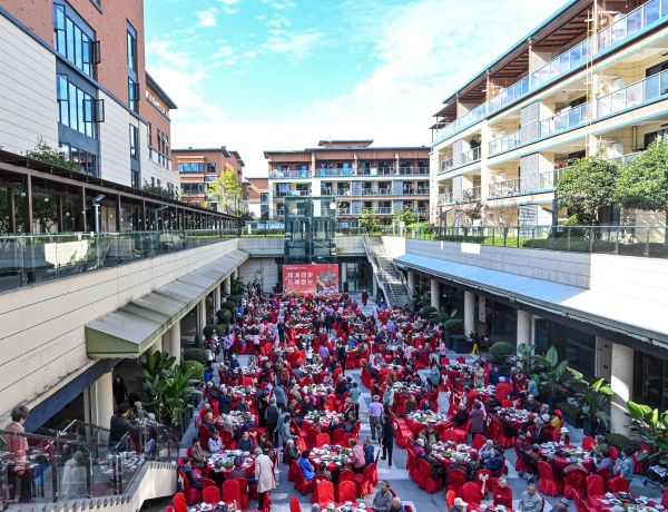此次活动旨在传承中华传统孝文化,发扬敬老爱老精神,加强社区邻里间的情感交流,提升康养社区品质。活动设置了集市售卖、趣味游戏、纪念照拍摄、嘉宾致辞、抽奖互动、魔术表演、春台家宴诸多环节,现场气氛热烈、喜气洋洋。