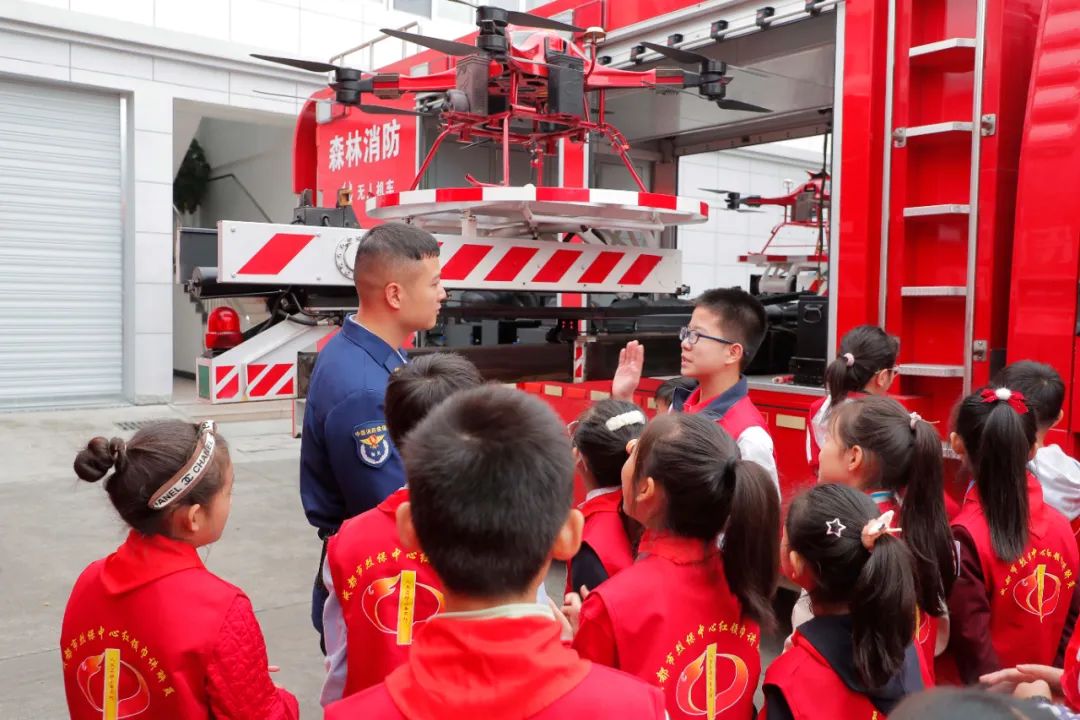 活动在灭火救援车辆器械演示和搜救犬救援展示中达到高潮。消防员们展示了森林防灭火、水域救援、地震救援等综合救援车辆和设备,以及常规机具灭火的实战操作,让在场的红领巾讲解员们亲眼目睹了消防员们的专业技能和高效协作。