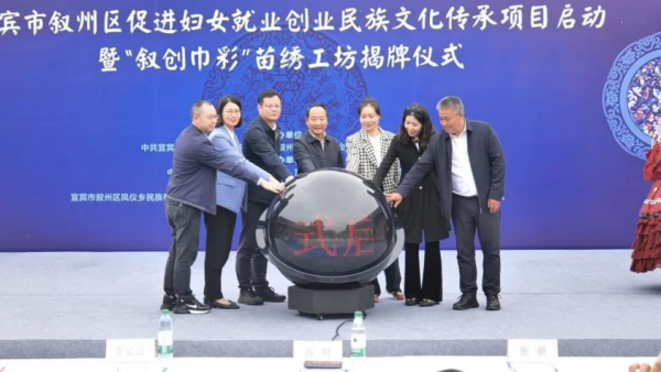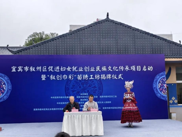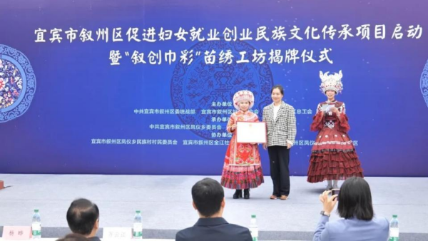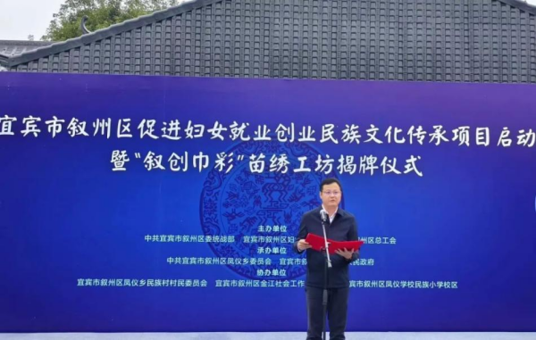 宜宾市叙州区举行促进妇女就业创业民族文化传承项目启动暨“叙创巾彩”苗绣工坊揭牌仪式