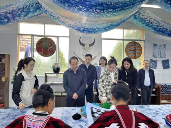 活动结束后,与会领导及嘉宾参观了“叙创巾彩”苗绣工坊,详细了解工坊的功能分区、运营模式及未来规划。(图文由宜宾市委统战部提供)