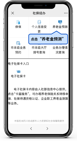 退休后的养老金究竟能有多少?这一问直击每位参保者的心弦,之前向大家科普养老金计发办法,从政策文件到实例解析,可谓是全方位无死角,但还是有小伙伴反映“这计算起来还是好难哦!”为了让大家都能轻松了解自己的养老待遇,这次要放大招啦!当当当当~“养老金预测”神器来啦!只需要动动手指,在“成都社保”微信公众号里点点点,你的养老待遇就能轻松get啦!