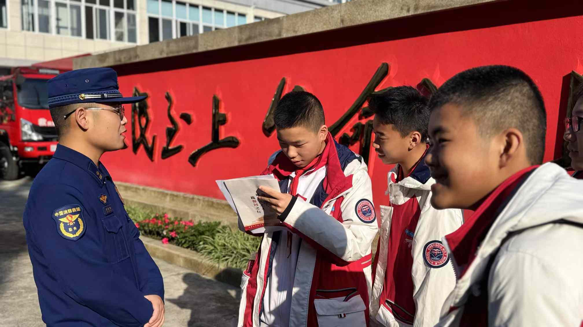 面对学生们轮番轰炸,消防员们一一耐心答复后勉励大家,既然体会到现在的岁月静好是因为背后的负重前行,那么大家就应该珍惜美好的校园时光,只争朝夕、勤奋学习,在别人需要帮助救援的时候才能站的出,救得下。