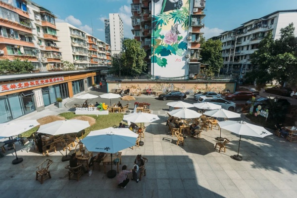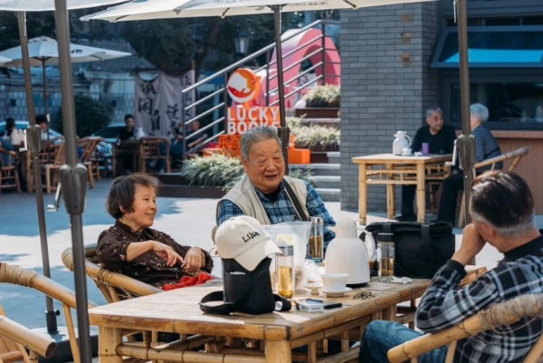 老成都的生活记忆里,晒太阳、喝盖碗茶、摆龙门阵是标配。而如此安逸、巴适的场景,不用走太远,在玉林北路社区,下楼就是。