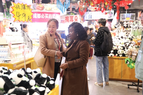 在两个多小时的游览中,嘉宾们收获满满,来自波黑的嘉宾尤利娅穿梭于不同的文创小店,书签、竹编器皿、文创布包等各种饱满四川特色和熊猫造型的文创产品她都“中意”不已。她说:“真想把这些‘熊猫’全部带回家。”