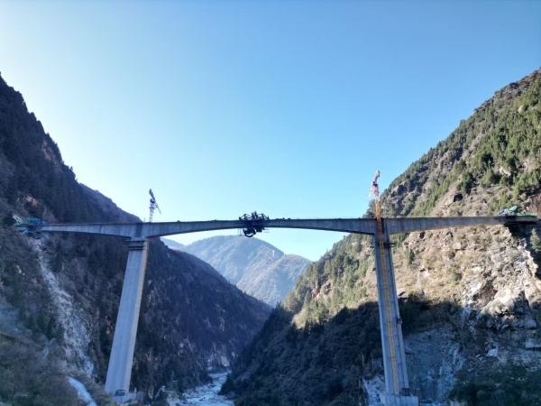 自大桥开工建设以来,项目团队积极开展“川西高原地区高山深切峡谷地形大跨径连续刚构桥关键技术研究”,牢牢守住安全、质量和环保底线,不断优化施工组织,强化工序转化衔接,注重工艺工法创新,持续提升施工效率。项目团队积极克服交叉作业、低温霜冻、森林防火等困难,在高原峡谷中芝麻绿豆大的场地上有序、高效、稳步推进大桥施工建设。
