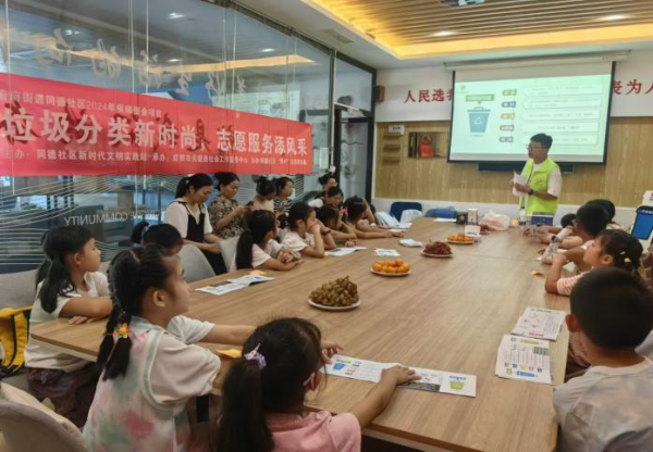“垃圾分类新风尚,志愿服务添风采”活动。活动伊始,同德社区“青柠”志愿服务队潘队长讲解垃圾分类背景、意义及政策,通过图文与问答,让孩子们清晰掌握分类标准。随后,孩子们在社工指导下进行实操演练,亲身体验。活动尾声,还有小小志愿者助力宣传,将垃圾分类知识传递给居民与商铺。