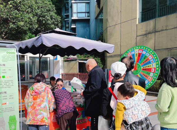 “低价值可回收物”垃圾分类趣味游戏。活动现场特设垃圾分类知识大转盘,参与者转动转盘并快速分类垃圾,正确者将获赠环保帆布袋、定制笔记本等精美小礼。此外,还有垃圾分类志愿者现场指导,答疑解惑。