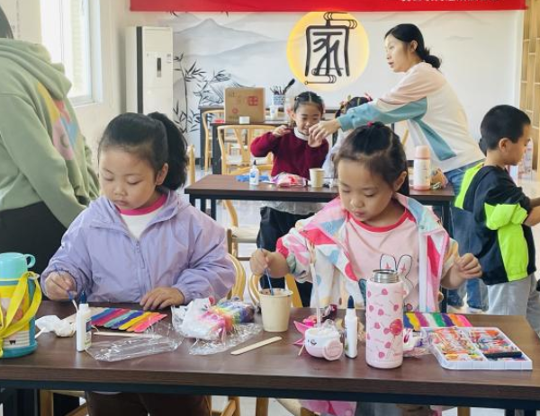 “DIY门牌号”趣味活动。活动现场,志愿者们替孩子们清洗吃过的雪糕棍后,孩子们用画笔和粘土制作独一无二的门牌号。本次活动特别注重亲子间的互动与合作,家长不仅是孩子的支持者,更是他们创意的启蒙者。在制作过程中,亲子间交流增多,情感更加深厚,营造出温馨和谐的氛围。