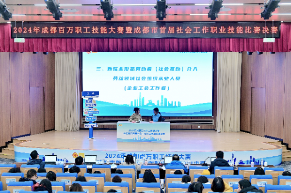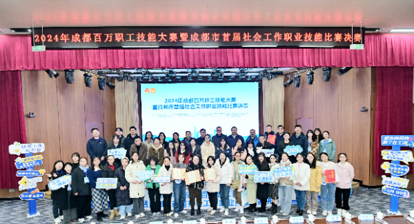 2024年12月12日,2024年成都百万职工技能大赛暨成都市首届社会工作职业技能比赛决赛在成都社会组织学院求是厅举行。本次大赛由成都市总工会、中共成都市委社会工作部联合主办,锦江区总工会、中共成都市锦江区委社会工作部承办。