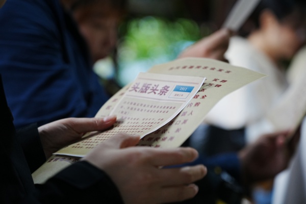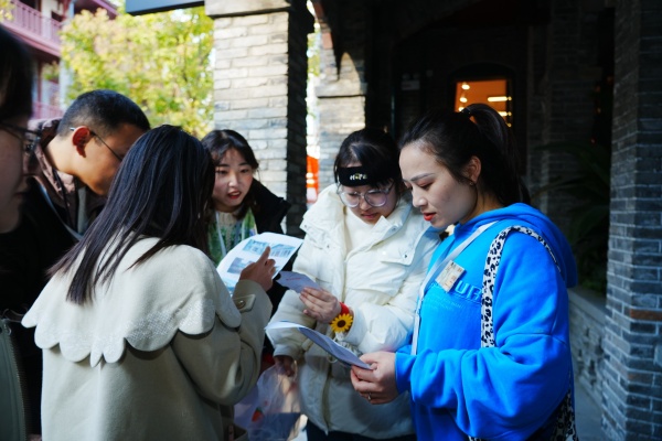 这是由青羊区委组织部、区委党史研究室、区委宣传部(区文明办)、区文体旅局主办,区文物管理所承办,区新时代文明实践中心协办的“青羊City walk——探秘祠堂街”主题社教活动《峥嵘岁月·成都往事之新华日报》的互动体验环节。